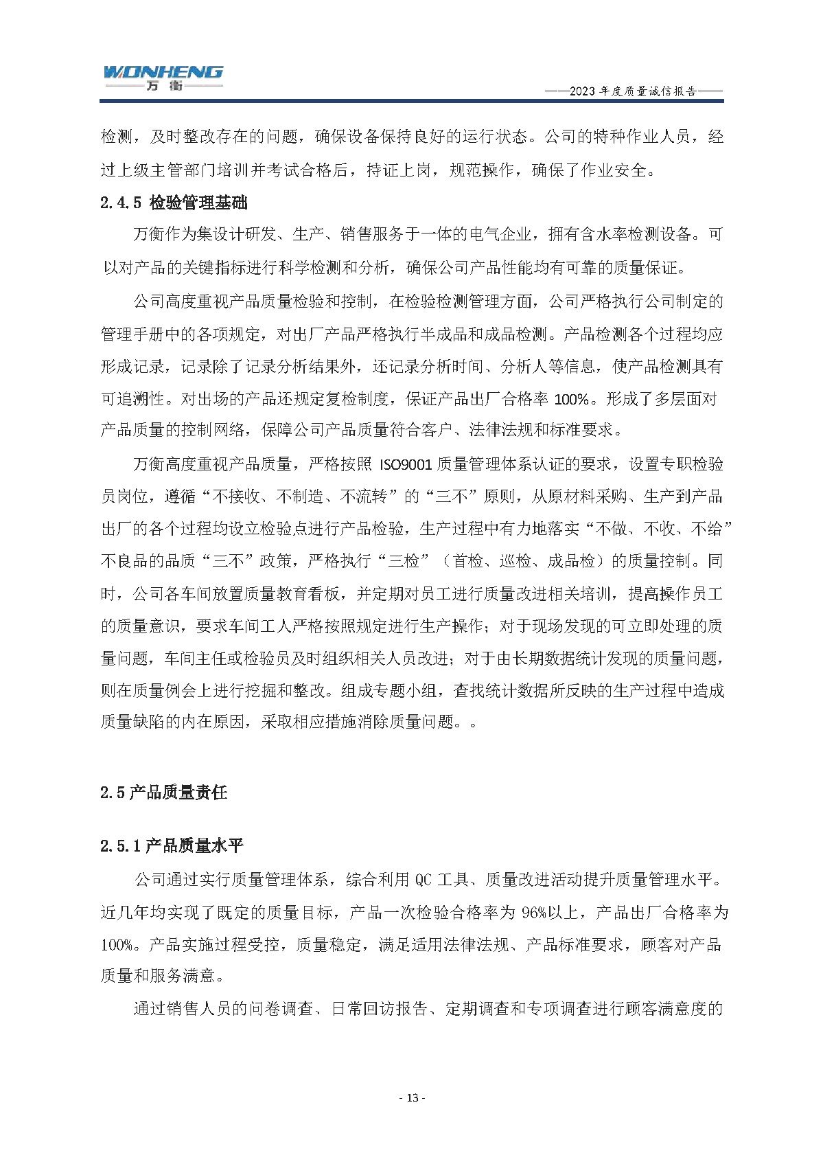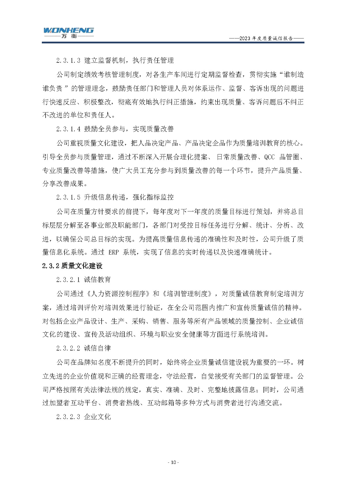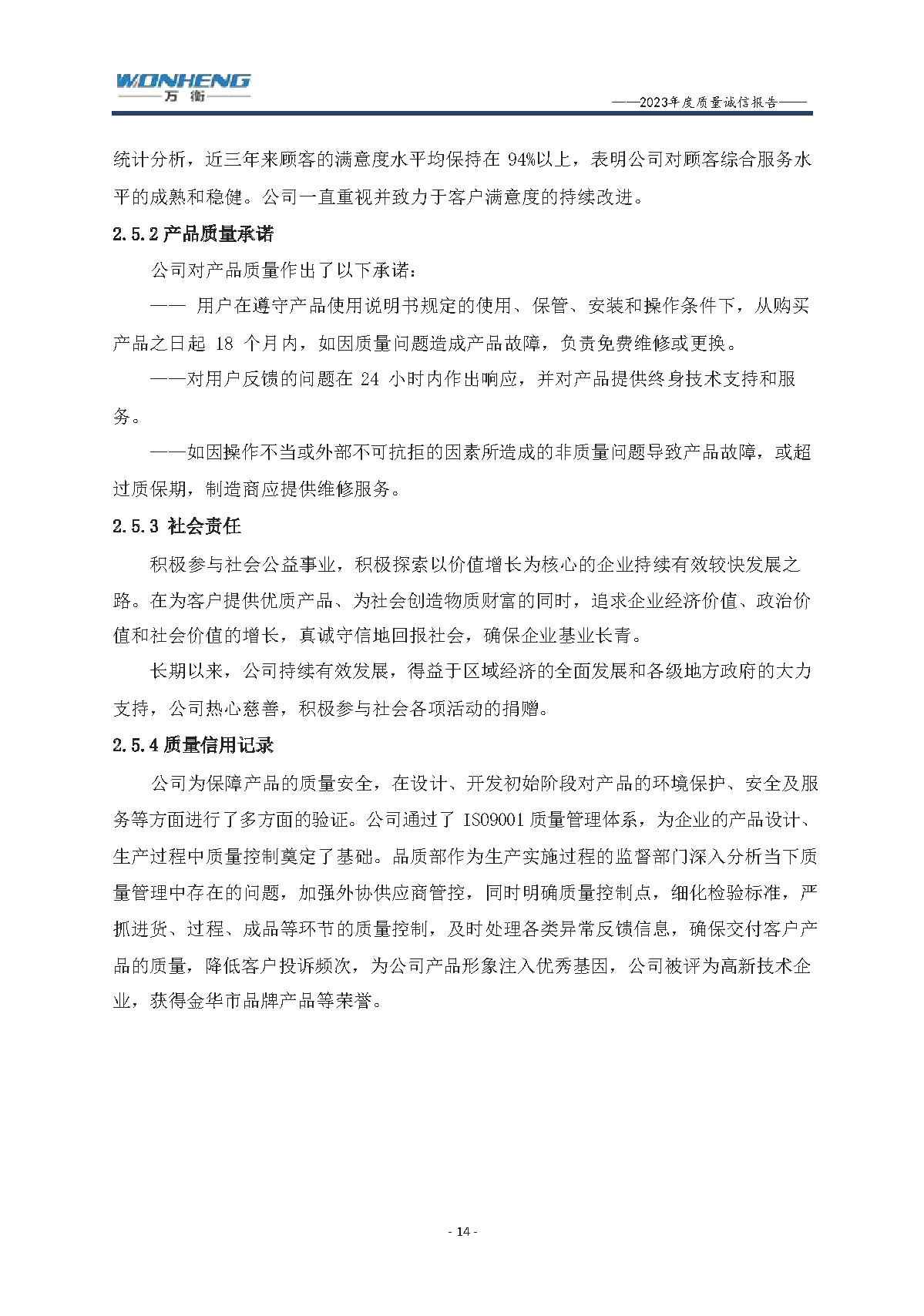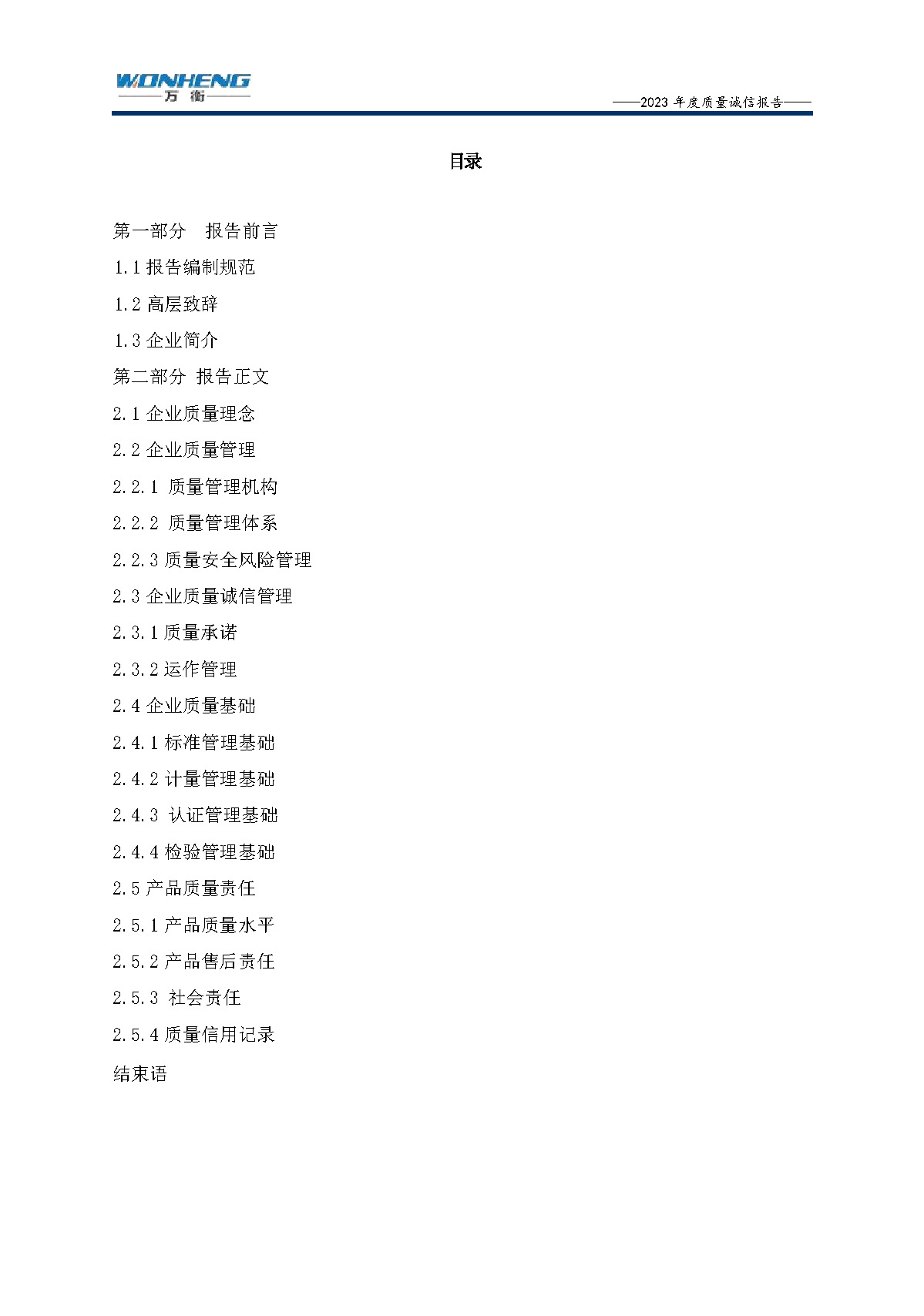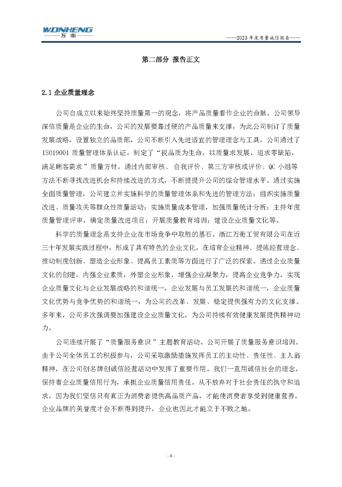 浙江萬衡工貿有限公司2023年度質量誠信報告