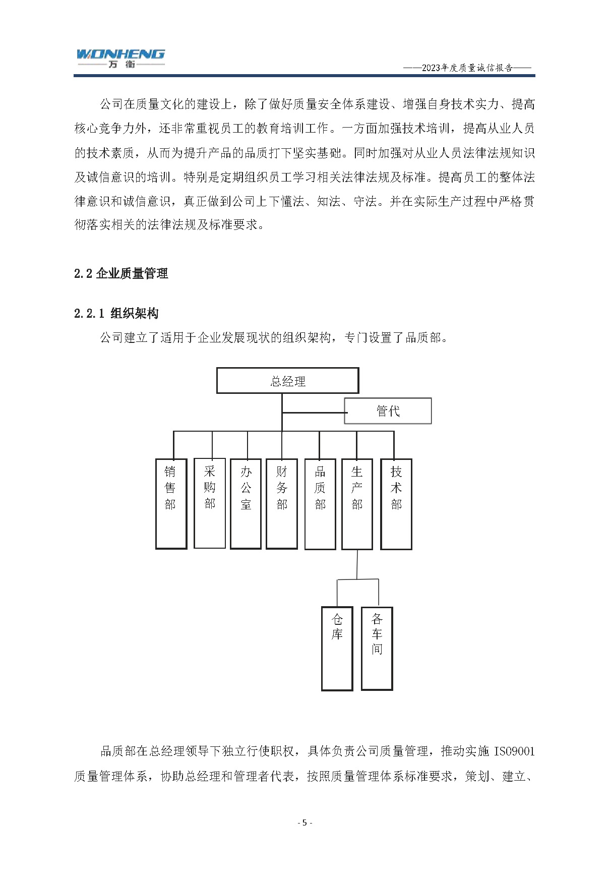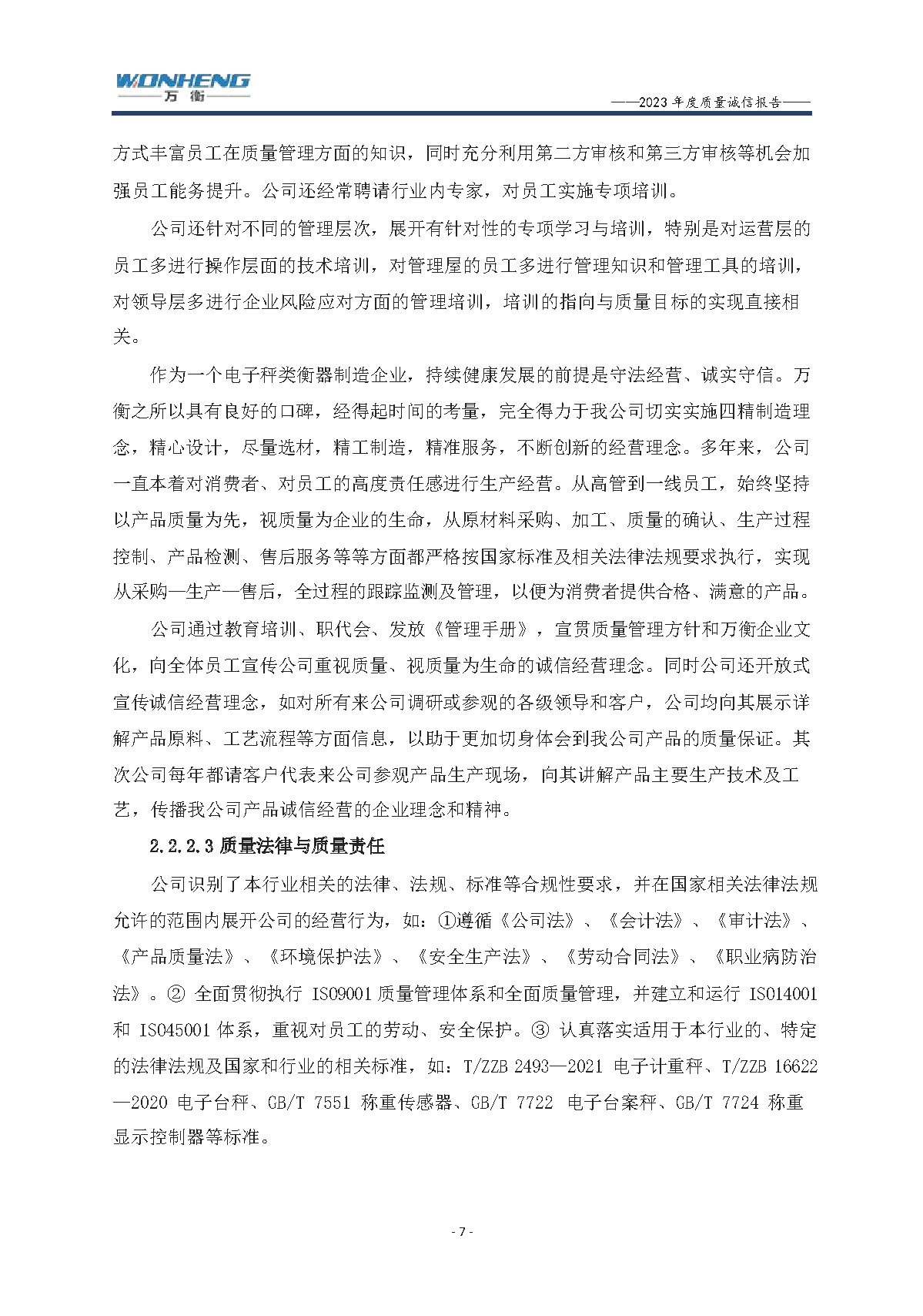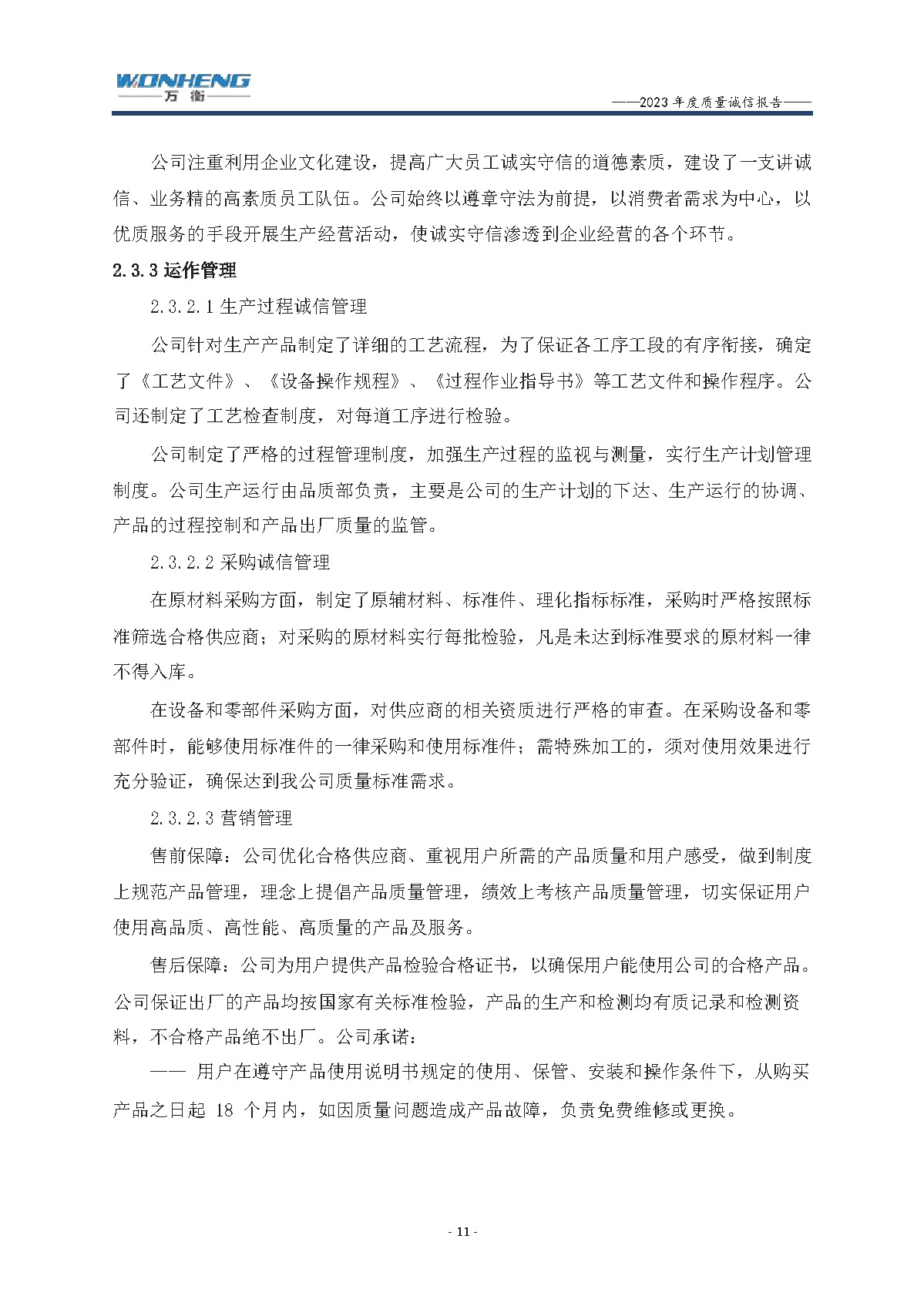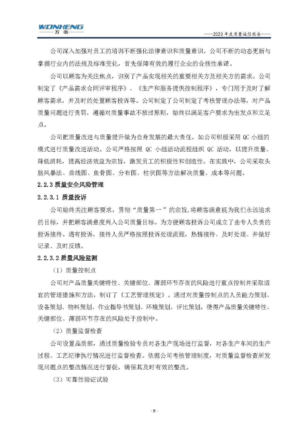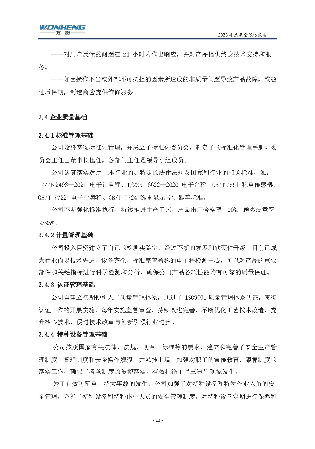浙江萬衡工貿有限公司2023年度質量誠信報告