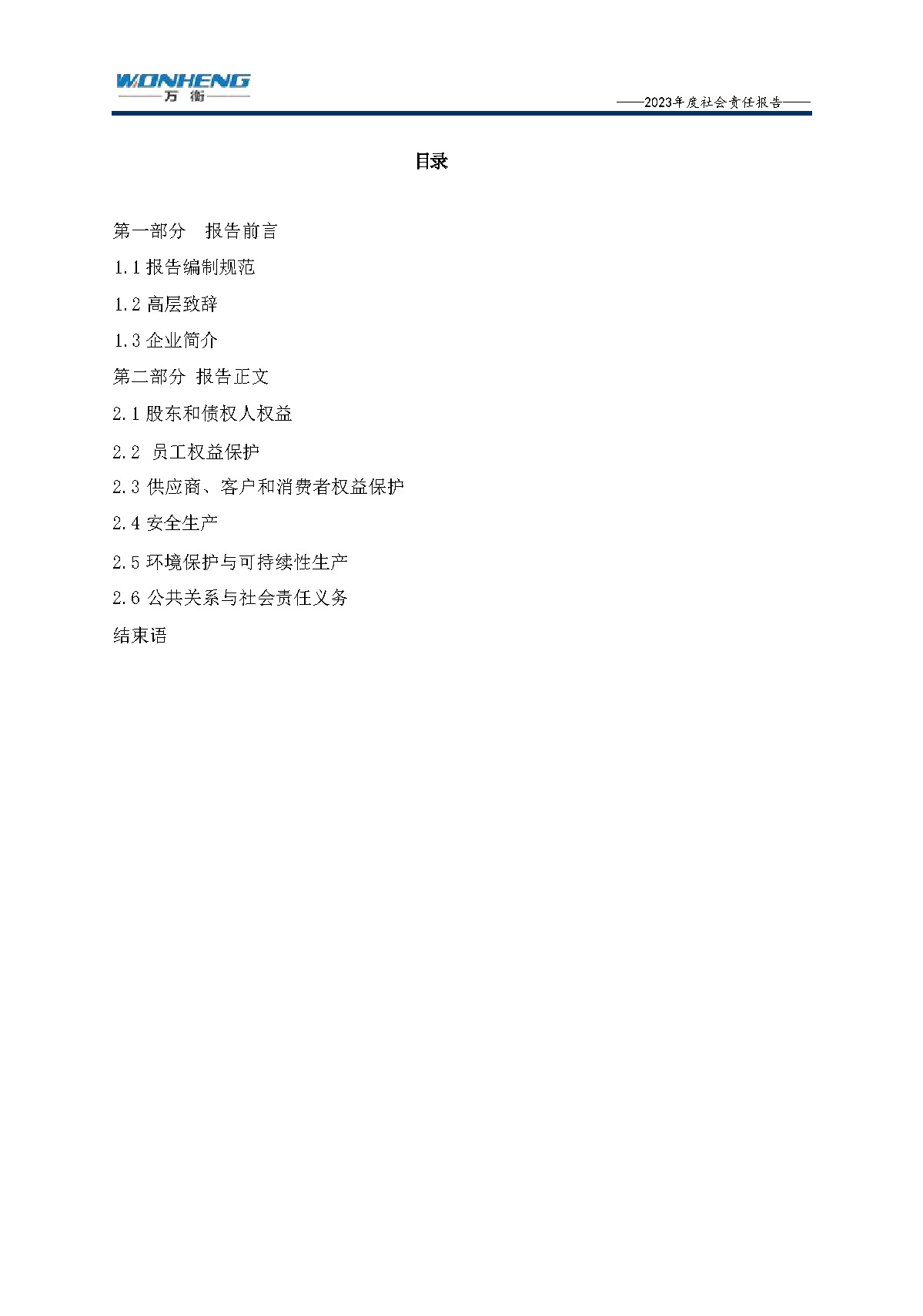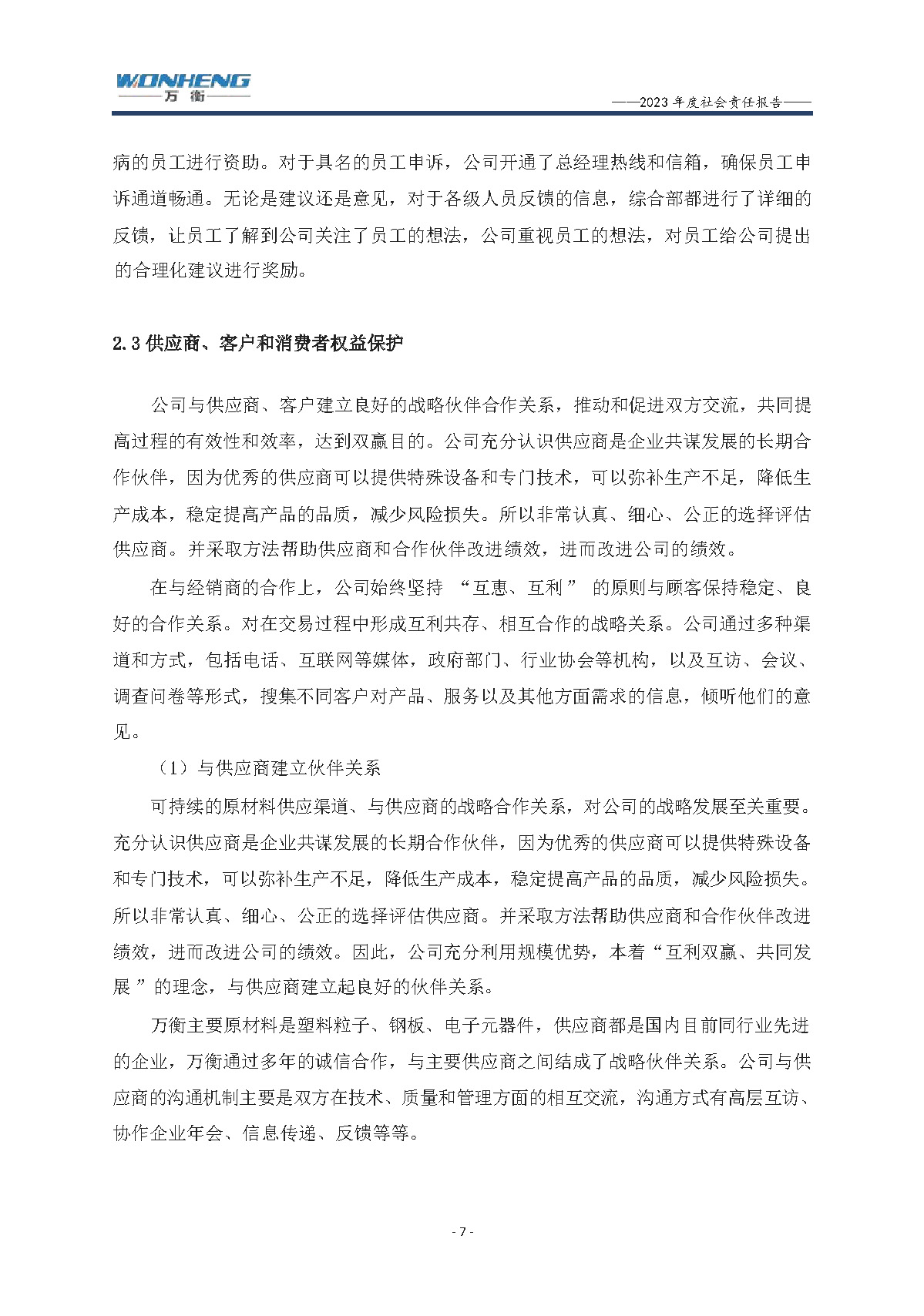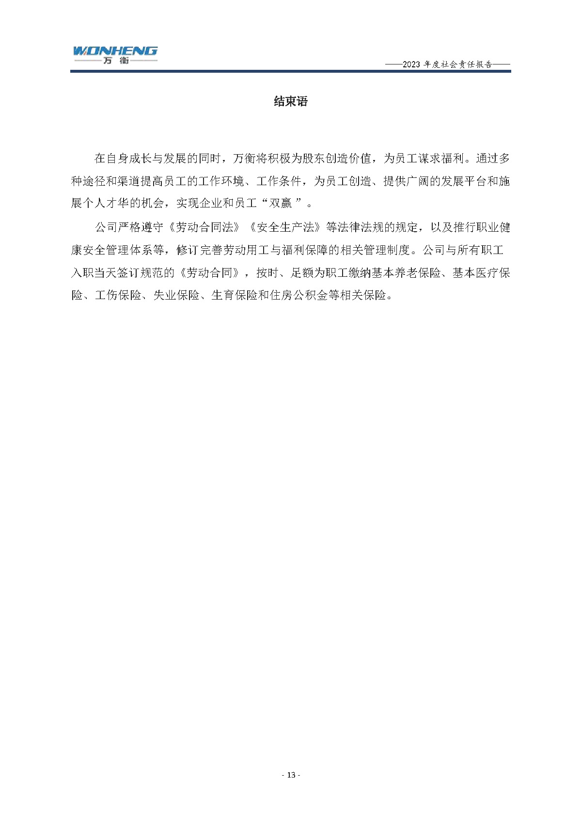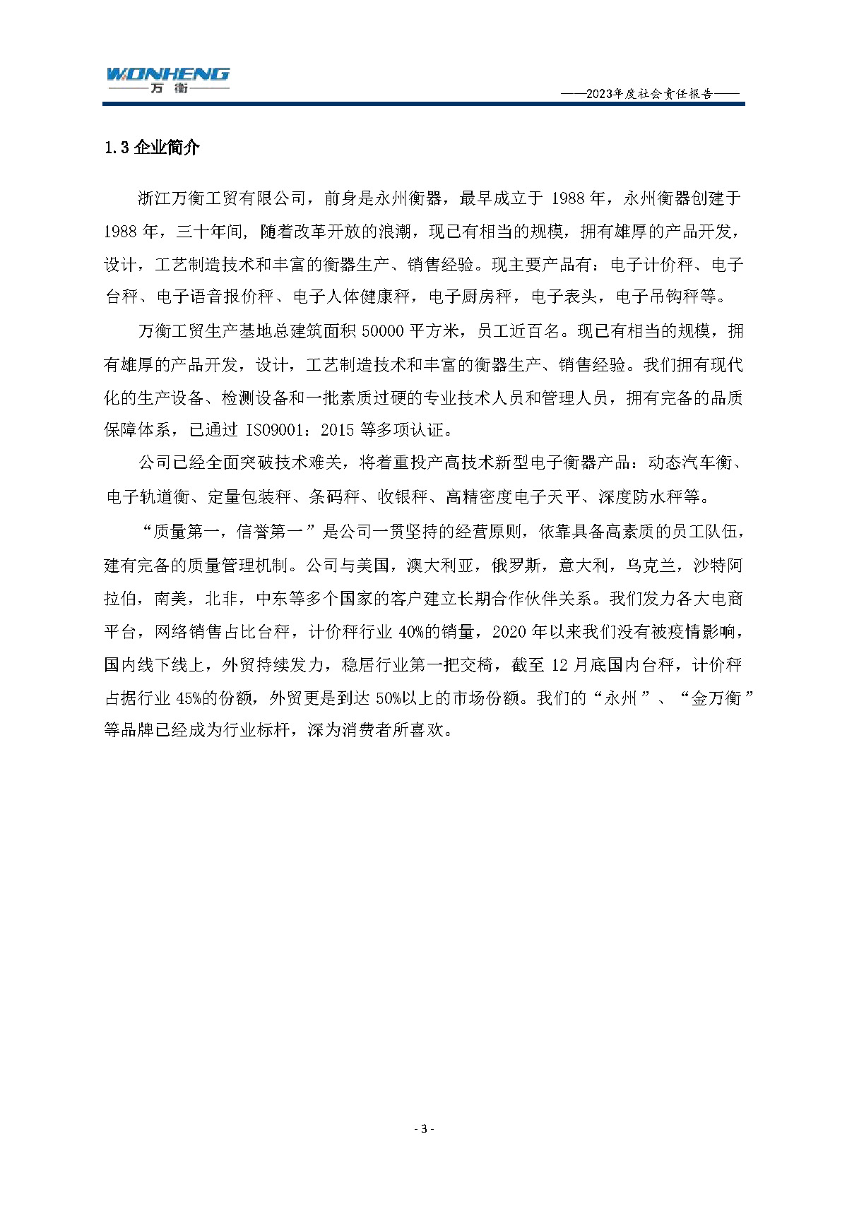 浙江萬(wàn)衡工貿(mào)有限公司2023年度社會(huì)責(zé)任報(bào)告