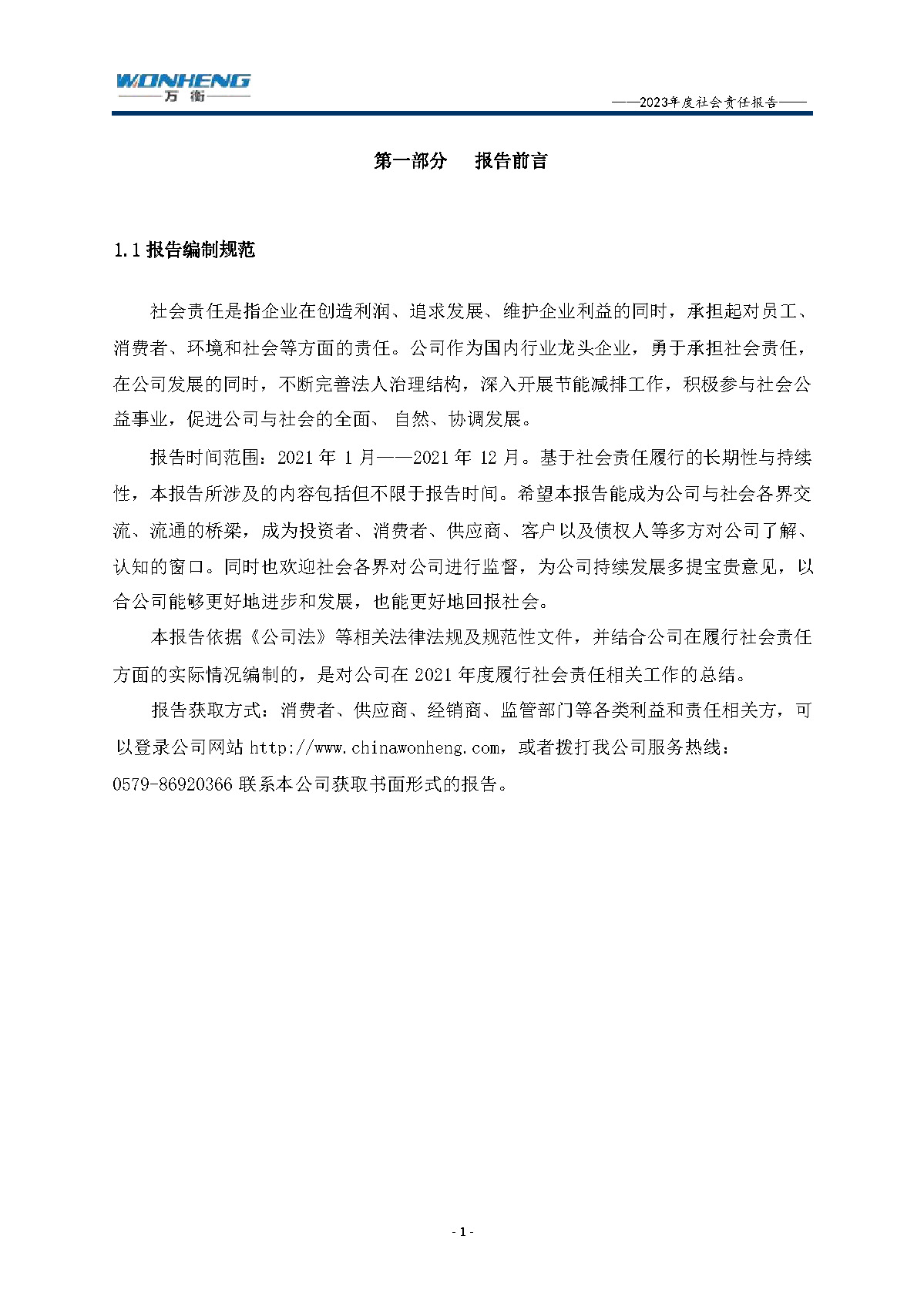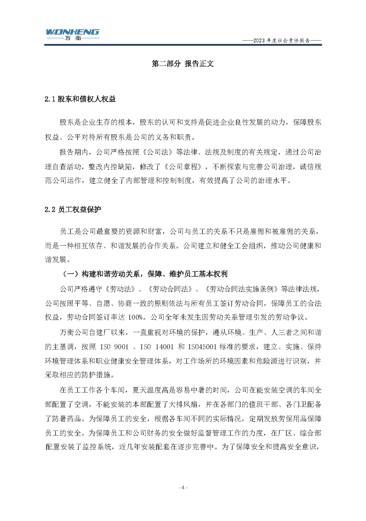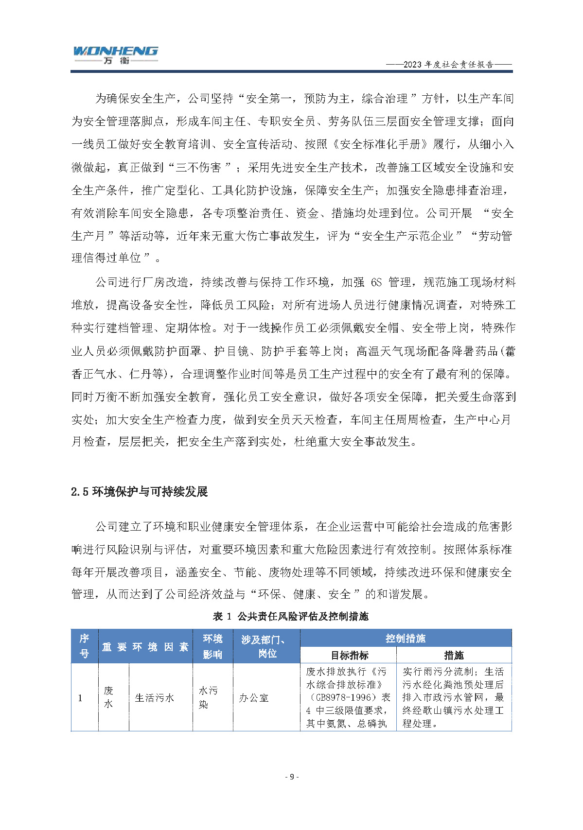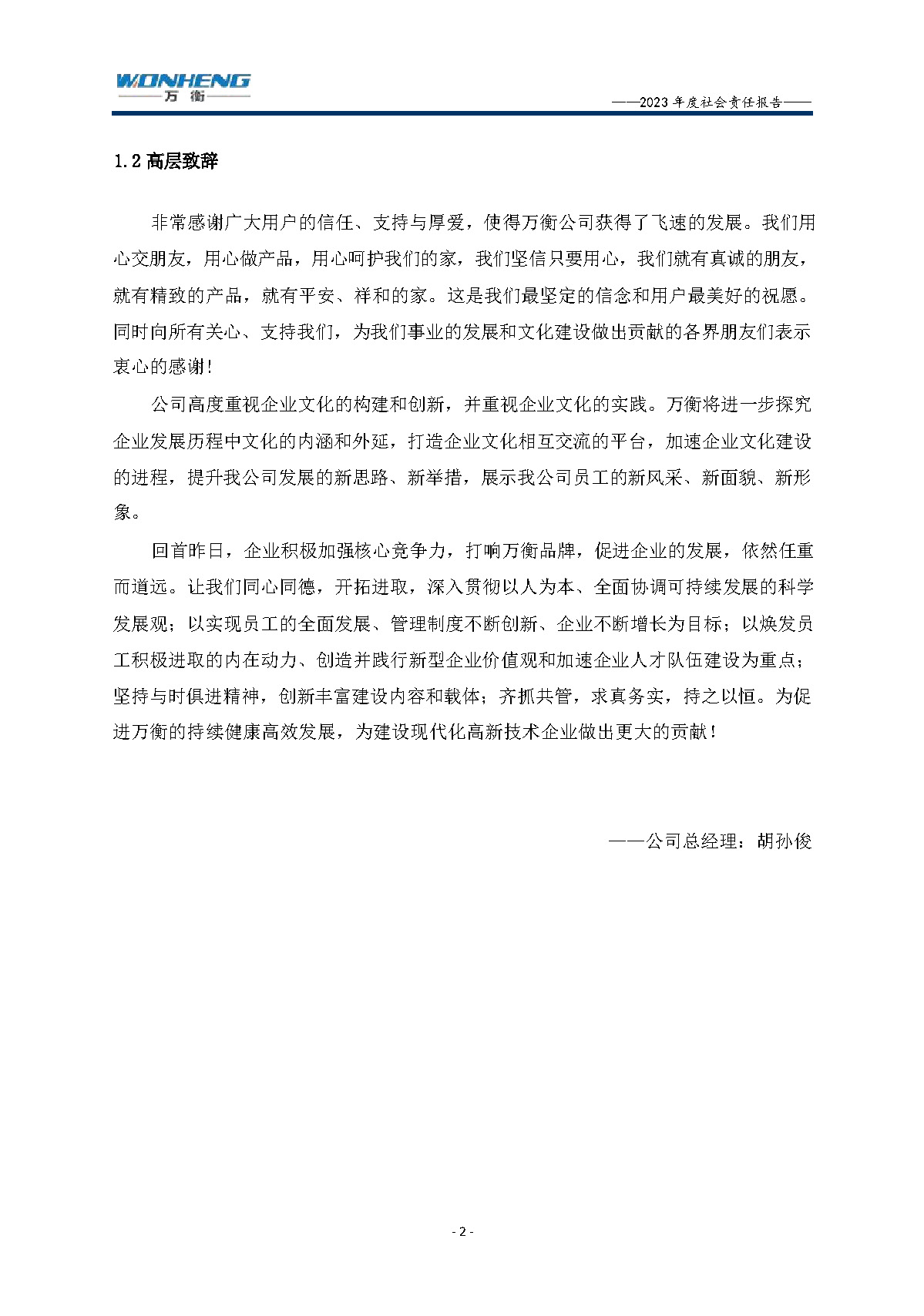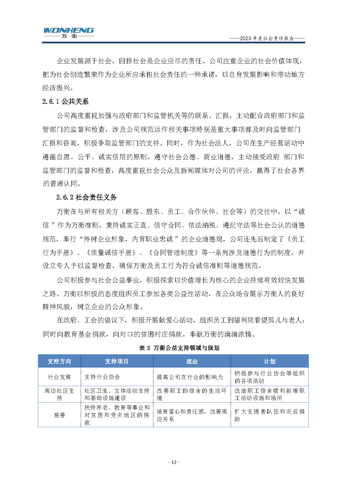 浙江萬(wàn)衡工貿(mào)有限公司2023年度社會(huì)責(zé)任報(bào)告